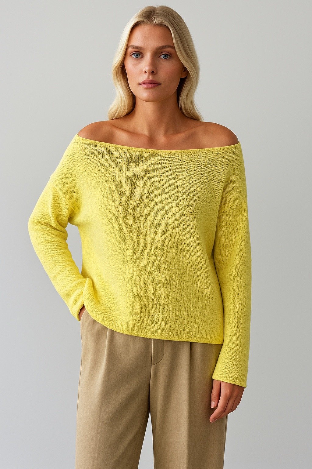 Soft, airy, and effortlessly elegant — the Sol Knit Top from BISOUS captures the essence of laid-back sophistication. Its off-shoulder design drapes naturally across the collarbone, while the lightweight knit adds fluidity and grace to every movement. Designed to be worn with ease, this piece balances comfort and refinement, inviting a sense of lightness into any look.